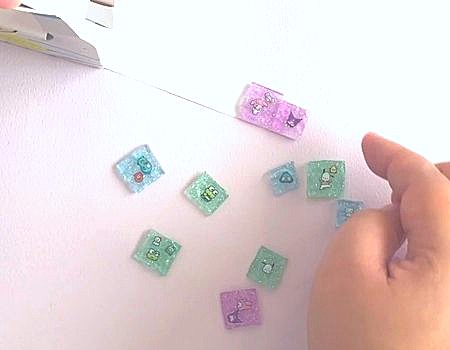 タイルの裏に両面テープを貼り、シールにしたら完成です