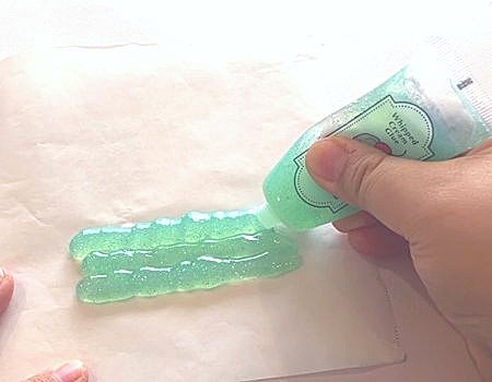 クッキングシートにホイップクリームのりを5mm程度に平らに伸ばし、乾かします