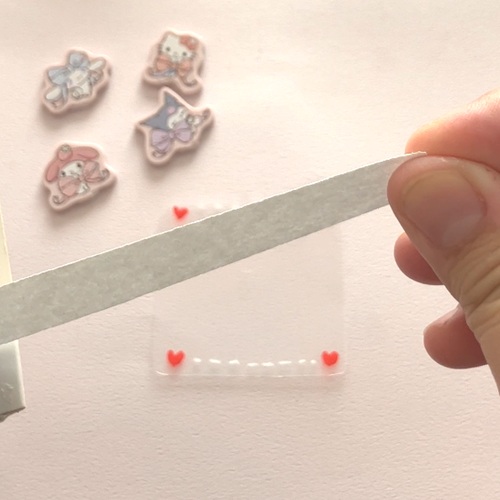カプセルに入れるシールを台紙ごとカットします