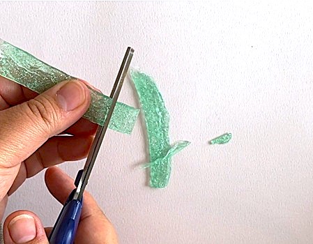 タイルシールの形になるように、ハサミでカットします
