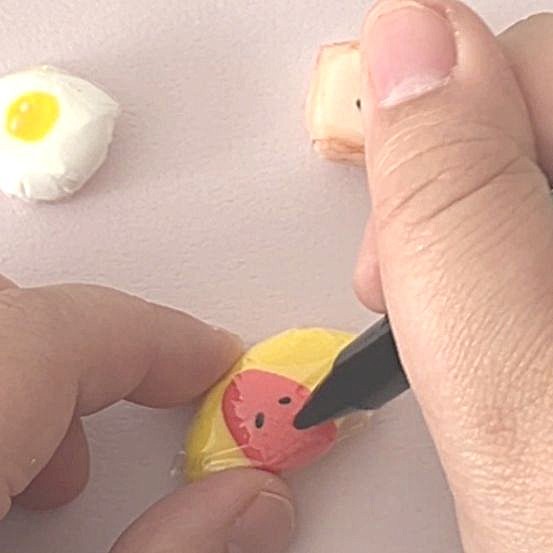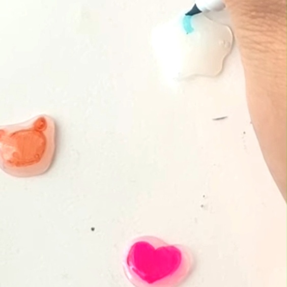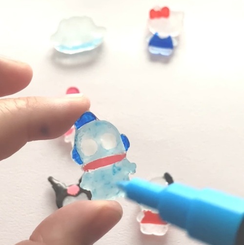 作ったレジンを裏返し、目、鼻、口など細かいところ以外をペンで色を塗ります
