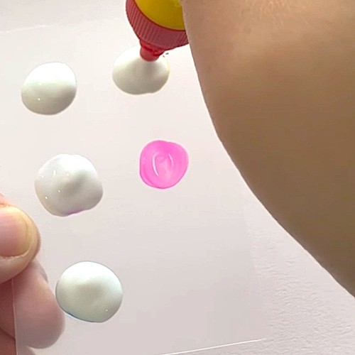 ペンの色が落ちないように液体のりを塗ります