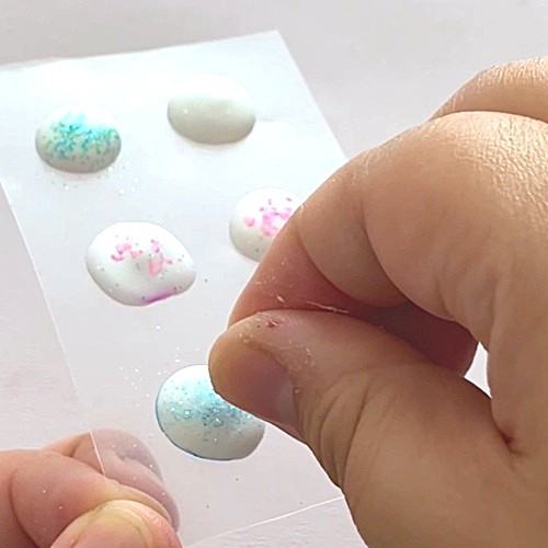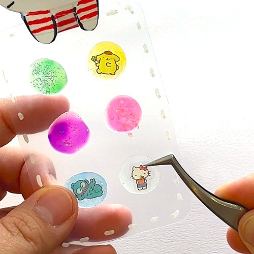 キラキラシールとレジンでぷっくりボンボンドロップシール!