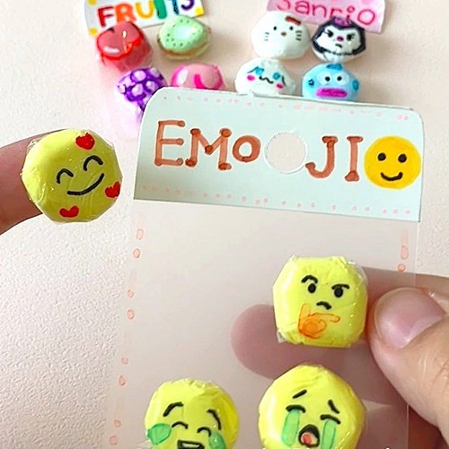 ペンで顔を描いて可愛いシールを手作りしました