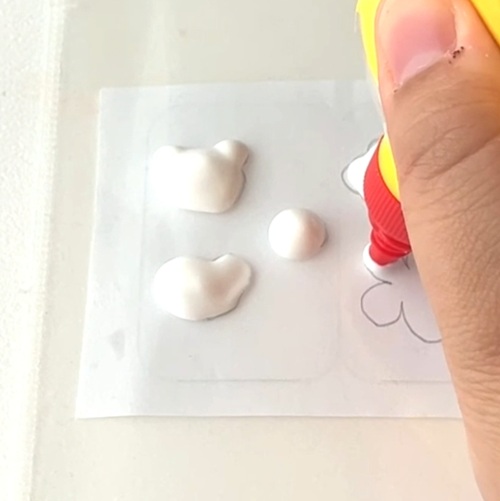 クリアファイルに作りたいシールの形にぷっくりボンドを盛ります