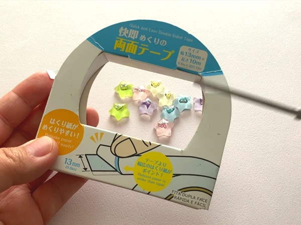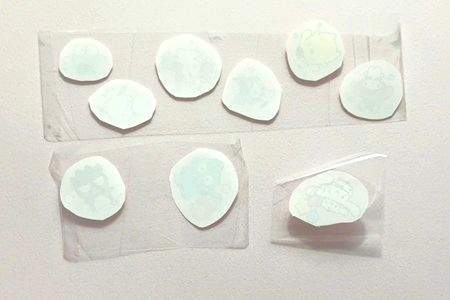 OPPテープの粘着面に切ったキャラクター紙の表を乗せます