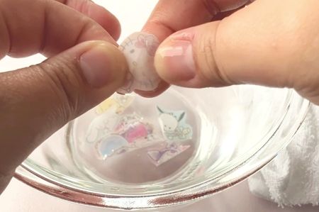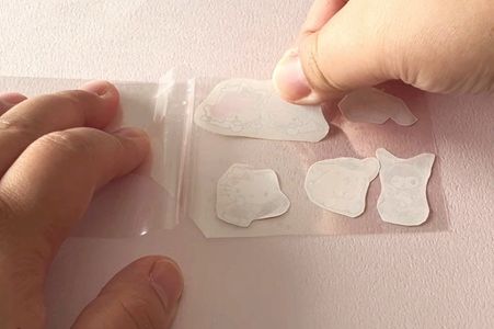 絵柄が透けて見えたら、水気をふき取ってシール台紙に貼ります
